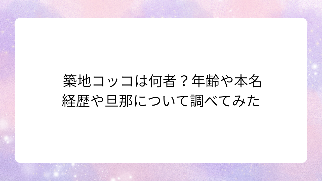 この記事では、公開されている情報をもとに、築地コッコさんのプロフィールや経歴、家族について分かりやすくまとめていきます。
